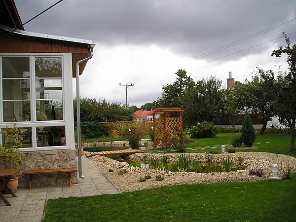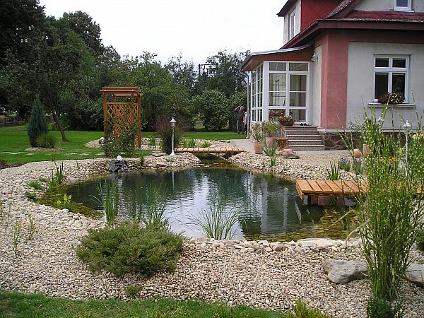 Investor měl požadavek na vytvoření soukromé zahrady s odpočinkovou a okrasnou funkcí. Na zahradě bylo vytvořeno přírodní koupací jezírko se samočisticí funkcí, zároveň došlo k přímému propojení obytných prostor rodinného domu prostřednictvím navržené zimní zahrady s exteriérem.